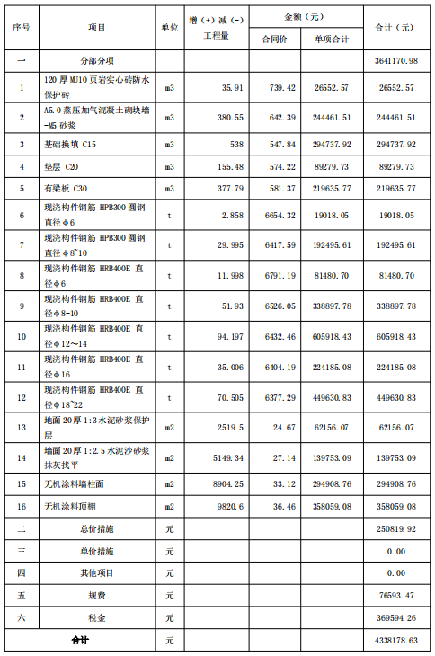 某住宅房屋建筑工程总承包项目中,总承包方经发包人同意通过改变发包方要求设计优化钢筋、砌筑加气混凝土砌块、垫层C20等内容的工程量进行了设计优化,形成4,338,178.63元的利益,如表1所示,然而,合同中未对节约造价形成利益的分配做出明确约定,双方因此产生了争议,需要协商解决。表1 优化费用明细表