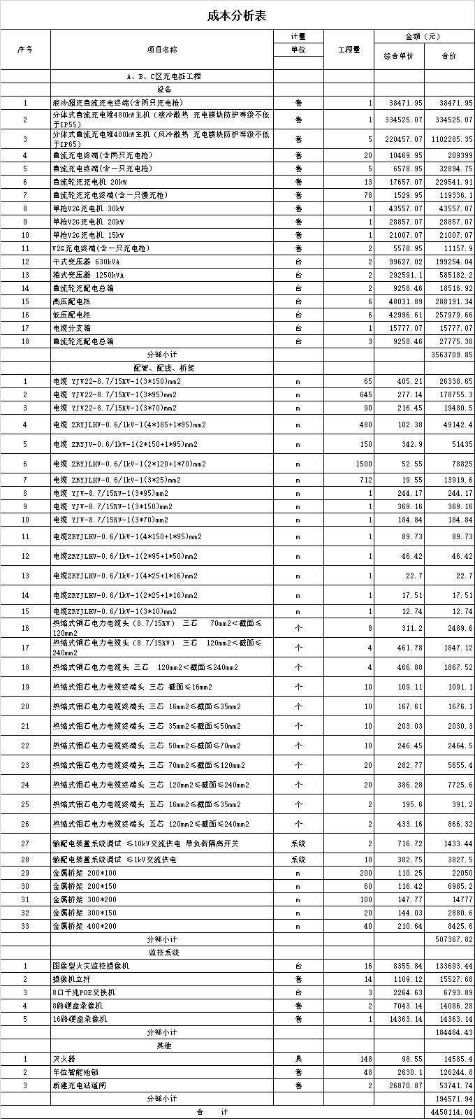 从成本组成比例看,屋面光伏最大的成本还是电气部分,而电气部分又以光伏组件单元部分成本占比最大,选择合适的光伏组件能够有效控制成本,主要结合发电功率,选择合适厚度玻璃的光伏板,采用 3.2+3.2mm碲化镉发电玻璃,另外由于光伏板放于屋面,是不可视位置,因而对光伏板的颜色不要有特殊的要求,否则也会增加成本除了光伏板外。以本工程安装工程为例,在工程造价管理过程中,项目团队积极响应双碳目标的号召,将环保和节能理念贯穿于整个项目的始终。特别值得一提的是,工程团队在项目中创新性地引入了光伏技术。利用光伏技术,工程现场安装了太阳能光伏发电系统,这不仅为施工现场提供了清洁、可再生的电力,大幅降低了对传统电网的依赖,而且显著减少了因化石能源消耗而产生的碳排放。此外,该工程在造价管理中还综合考虑了多个方面。例如,在材料选择上,项目团队优先选用了低碳环保的建筑材料,这些材料不仅性能优良,而且符合环保标准,有效降低了工程对环境的负面影响。在施工方法上,团队也采用了绿色施工技术,通过精细化管理,减少了施工过程中的资源浪费和环境污染。同时,该工程在造价管理过程中还注重了数据的收集与分析。项目团队通过实时监控和记录工程进度、材料消耗、能源消耗等数据,及时调整施工方案和造价预算,确保了工程的顺利进行和造价的有效控制。案例2:某项目积极响应双碳节能政策,推动新能源汽车普及,减少碳排放,积极实施充电桩项目。项目背景:本项目分A区地下车位一层535个,B区地下车位一层共647个;C区地上车位217个。结合运营实际情况,本项目充电拟建设:(A区地下)快充车位8个、慢充车位12个;(B区地下)快充车位8个、慢充车位18个;(C区地上)快充车位32个、慢充车位50个。此项目共计快充车位48个;慢充车位80个。快充车位拟采用智能地锁方式进行秩序管控。